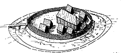 in einer festen Burg, sondern in den mit Palisadenzaun und Wassergraben